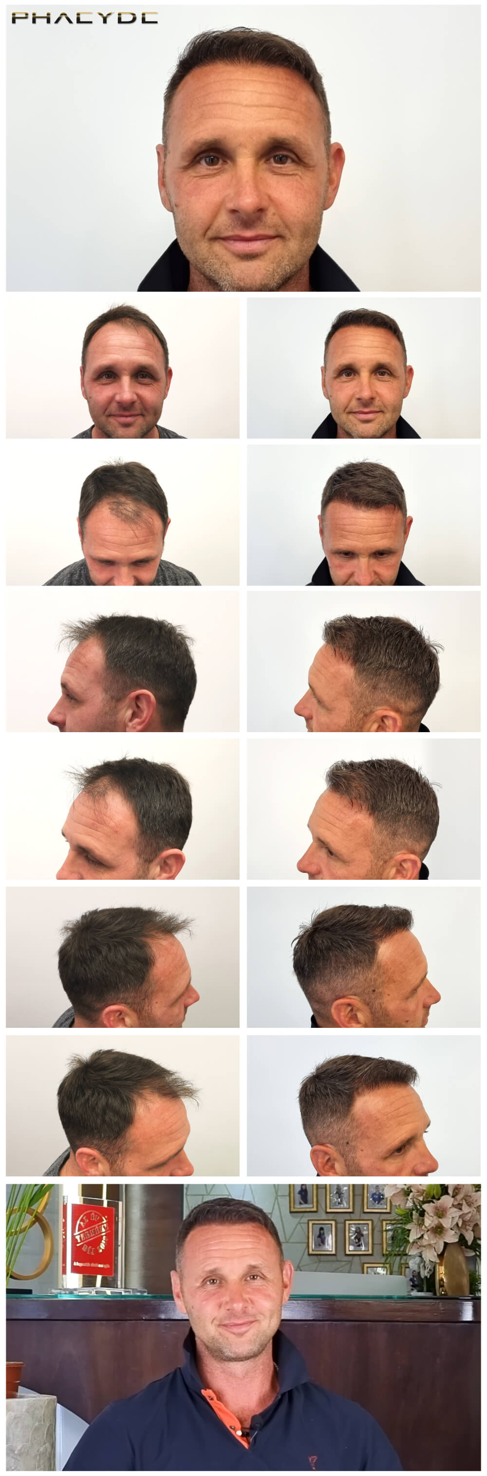 I det følgende kan du se før og efter billeder af vores patienter, som deltog i et hårimplantation på Klinikken PHAEYDE. Hermed vil vi takke alle vores patienter, som tillod os at vise deres billeder.